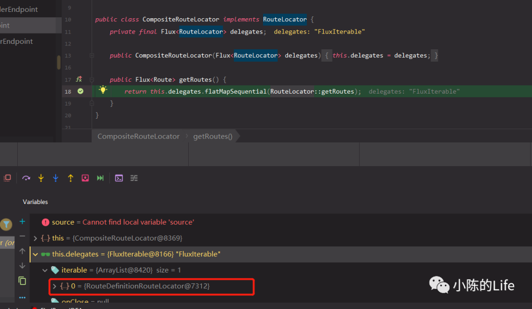 之后程序又跟入org.springframework.cloud.gateway.route.CompositeRouteLocator#getRoutes