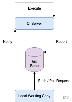 这里的环境还原指的是出包的时候的代码库还原。我们都知道每一个应用程序都有其唯一的一份代码,我们的测试包一般是根据如图所示的CI/CD流程来到测试手上,所以这里所指的环境也可以理解为构建机器在构建测试包时候,本地所处的代码库。