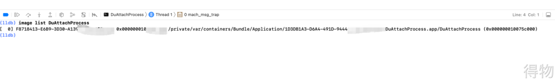 从上面可以看到,DuAttachProcess是有被加载到调试器的,那么会不会是该断点的代码没有被加载呢,其实我们也可以通过image的命令来验证: