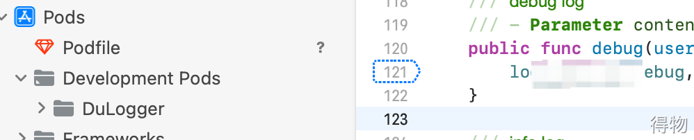 现在已经很少有单体工程了,一般我们都会使用cocoapods来管理组件,进行组件化开发,因此上一节的修改配置也只是针对主工程的target的。那么我们如果需要在组件中打断点会怎么样呢?