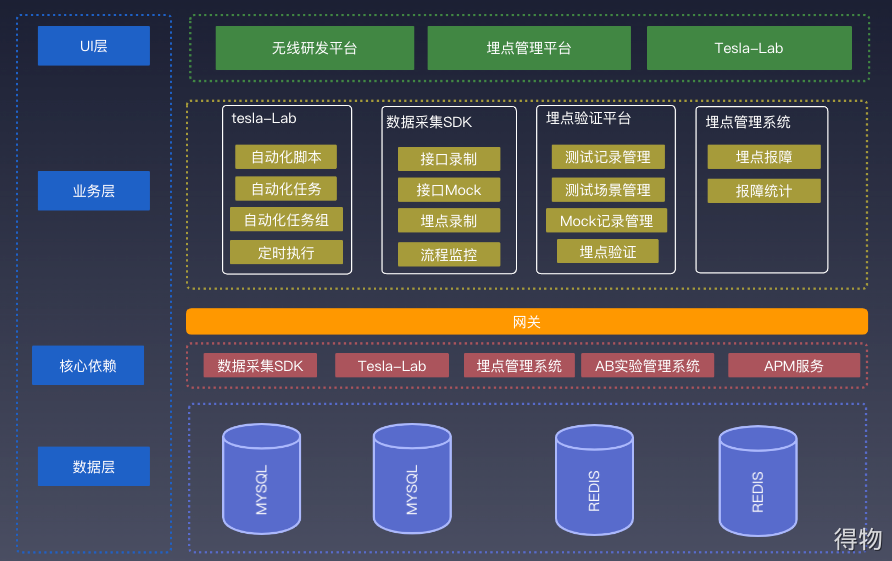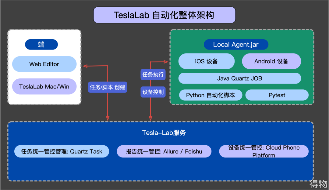 埋点自动化依赖 「Tesla-lab」 的自动化模块,其中数据Mock 记录的录制和UI自动化 脚本的录制依赖 「Tesla-lab」 本地编辑器,任务和任务组的定时执行依赖 「Tesla-lab」 任务调度模块,任务的实际执行依赖 「Tesla-lab」 任务执行器。