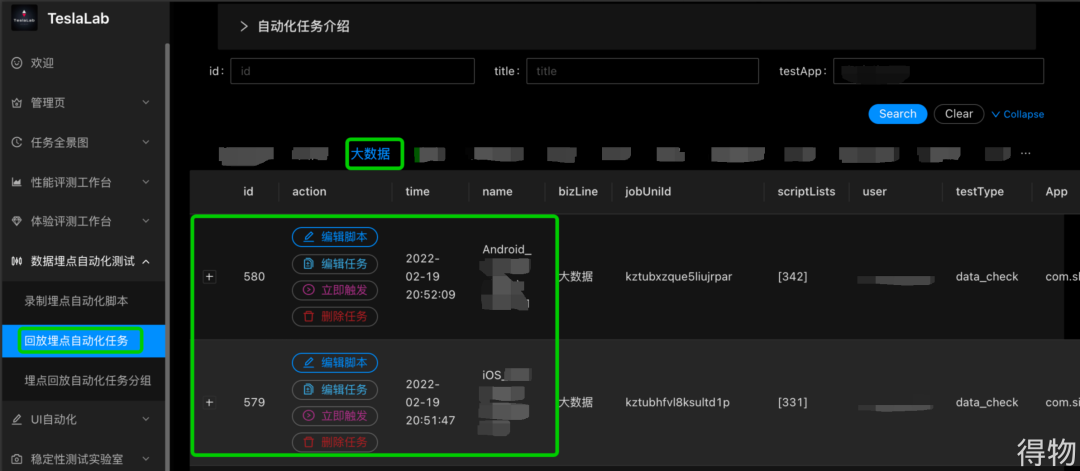 任务组:来自teslaLab的概念,即测试记录的集合,一般用于聚合各业务线的测试记录。