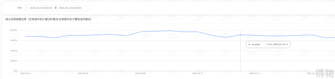 任务组通过率:指任务组中所有测试记录中没有异常的埋点总数之和(去重)占所有埋点总数之和(去重)的百分比。