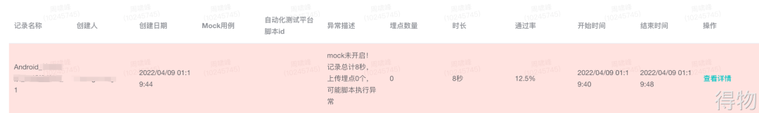 即测试记录中的埋点数量和录制的时长比例异常,正常比例约大于1:1,如果出现埋点数量小于录制时长秒数,一般为脚本异常,需要人工排查。