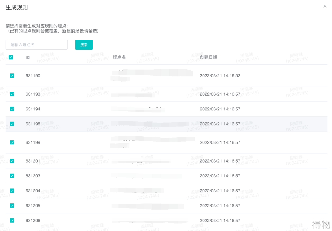 a. 通常一个测试用例中的埋点都有几十个,因此推荐在构建场景时直接从测试记录生成默认规则。