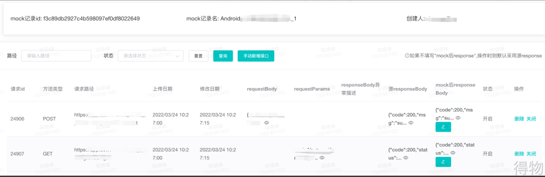 为了灵活控制mock的实际数据,每一个网络请求都会被录制,并且支持开关。对于get请求还支持根据requestParams来自动匹配对应的response。