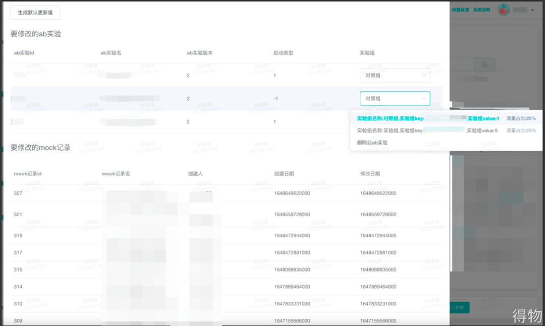 在录制mock数据初期,我们遇到过部分带有搜索商品操作的脚本会执行失败,经排查发现是端上的实验组代码已经调整,而ab配置下发的接口由于mock已经被固定,这导致原先录制的脚本无法适配新的实验组的代码。为此我们引入了事件变更监听,并过滤出所有来自ab管理系统的变更事件,再依据事件详情中的ab实验id去ab管理系统获取最新的配置信息,来自动生成用于批量更新mock数据的推荐修改结果。