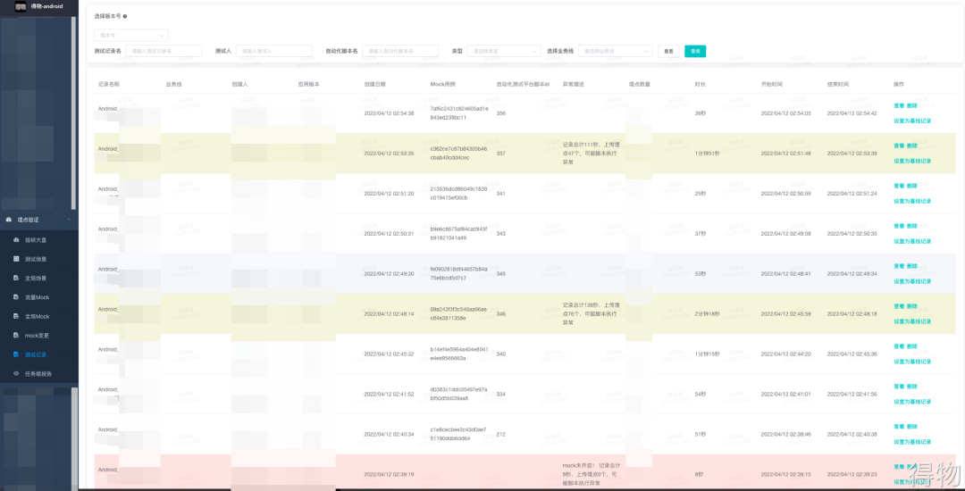 测试记录由移动端数据采集SDK创建,会根据端上上传的监控信息进行比对,如果有异常会飞书报警。