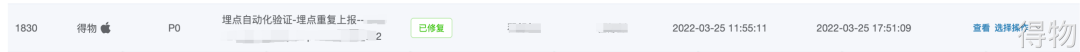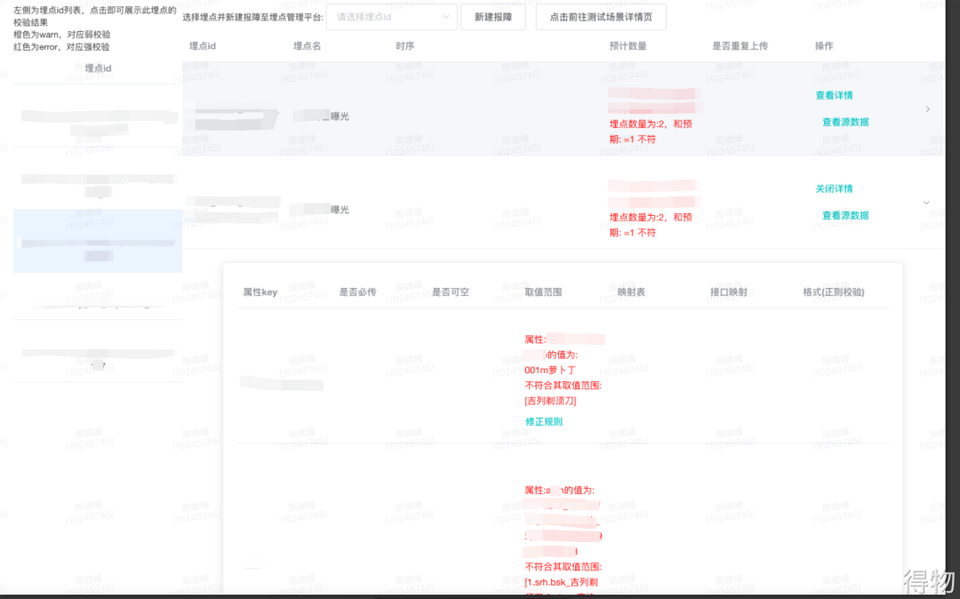c. 订正之后重新进行校验,产出的报告通过率通常会提升至75%左右,剩下的异常部分通常由一些随机因素导致(例如时间戳,页面浏览时长)。此时剩余问题较少,可以直接人工尝试复现,经确认后即可选择埋点并提交报障至埋点管理平台。