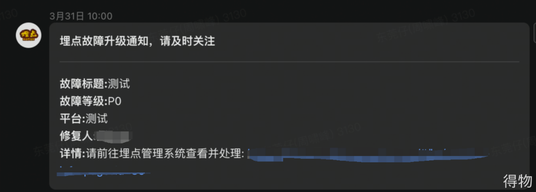 d. 埋点管理平台将发送飞书通知至最近负责过此埋点的研发,研发修复问题之后会飞书通知最近负责过的测试,经测试和报障发起人验收之后报障流程结束。如果问题在修复或者验收阶段停留超过一定时间将上升并飞书通知负责人leader。