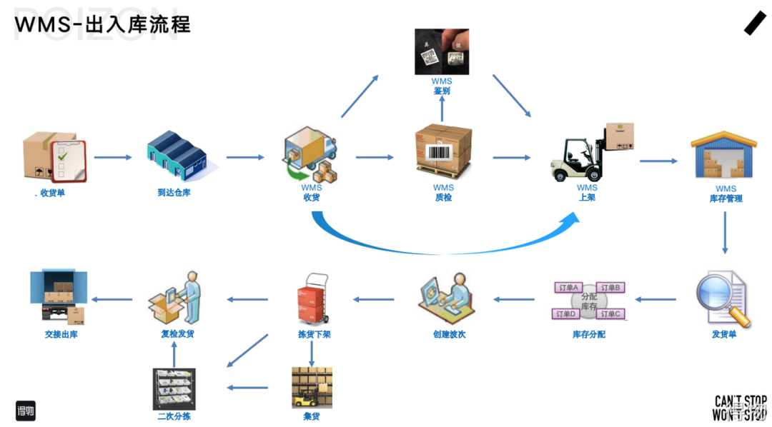 得物仓储管理系统(简称WMS),整体流程图如下: