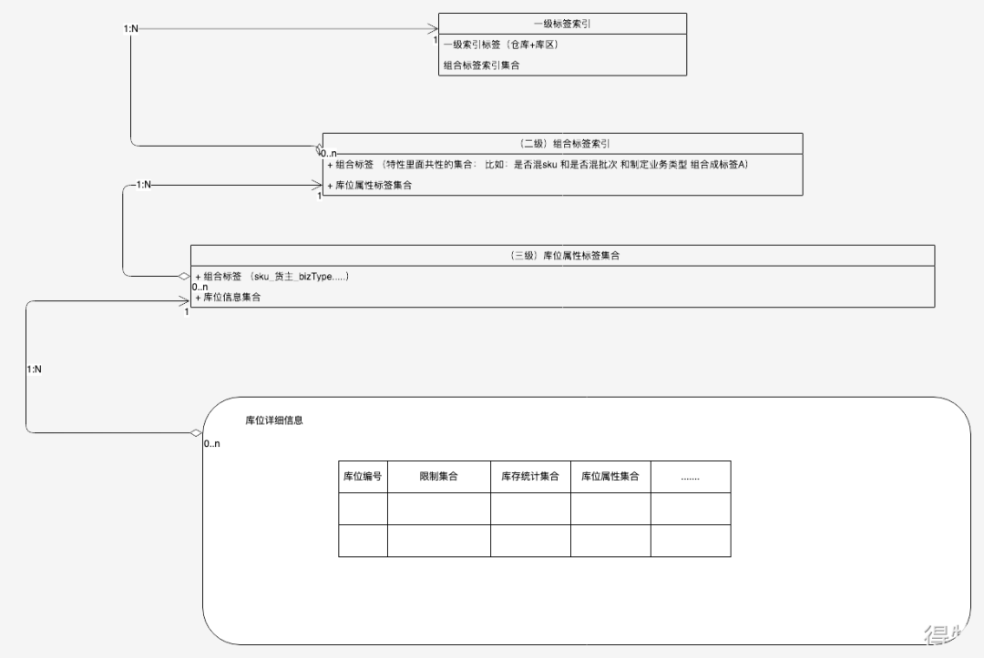 (1)推荐模型:包含两个模块分别是「库区库位信息」和「标签索引信息」,库区库位信息存放着库位的基础属性和限制属性还有库存属性、 标签索引信息包含限制分类、限制分组的具体信息等。