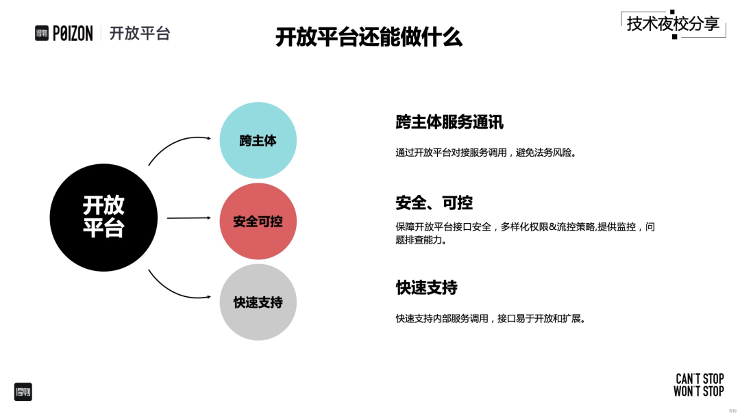 ▪ 对于技术来说:要做到接口安全、应用可控、业务快速支持和易于扩展。