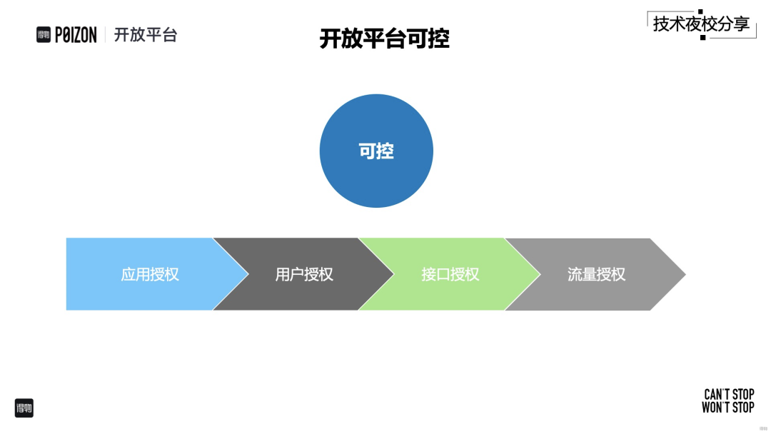 对于开放平台,基于用户授权、接口授权、流量授权纬度对一个应用进行管控。