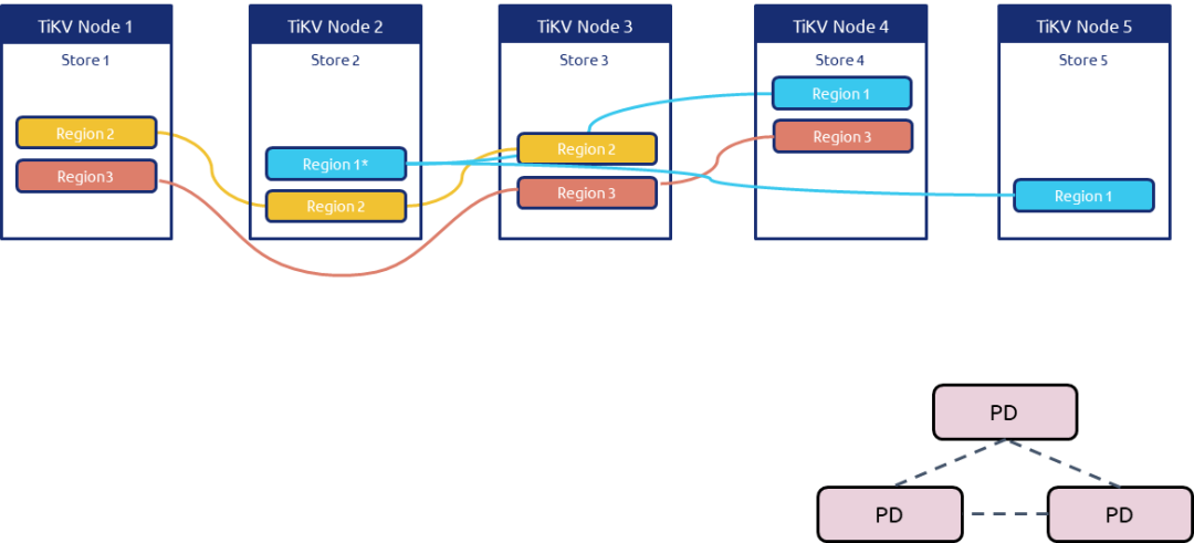 3、此时 PD 将Region1 的 leader 迁移至 Node2