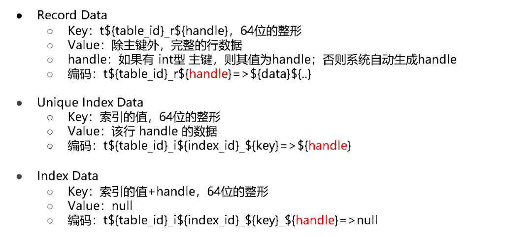 一行数据映射为一个 KV,Key 以 TableID 构造前缀,以行 ID 为后缀