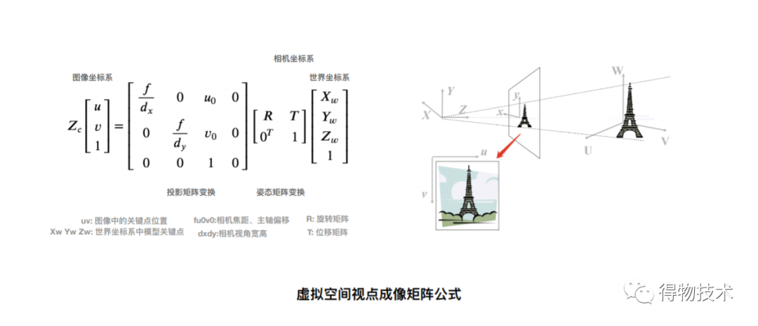 在相机成像过程中,一个三维的物体投影到二维平面的过程,称为投影矩阵变换。一般常用的有透视投影和正交投影。在3D渲染和AR中,主要用透视投影,模拟人的视觉系统。AR空间根据相机设备的真实参数配置虚拟相机的内参,使得透视效果与相机中的真实世界⼀致,以假乱真。