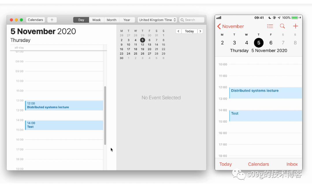 相反,日历应用程序允许即使设备离线,用户也能在他们的日历中读取和写入事件。他们可以在稍后的某个有网的时候,在设备之间同步更新。