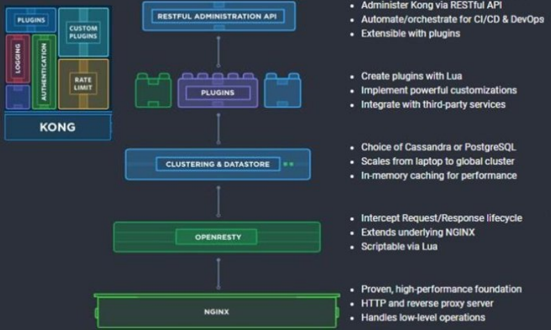性能:Kong通过扩展和使用NGINX作为核心轻松处理负载。
