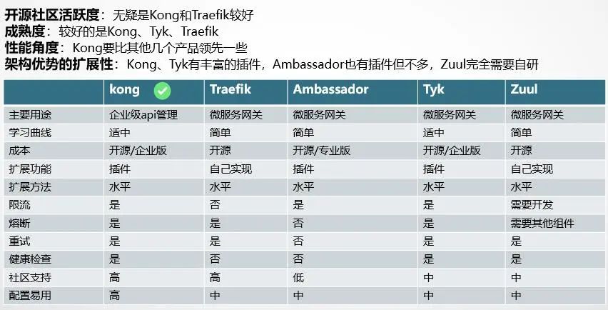 从上面对比图也可以看到,Kong网关在功能,性能,插件可扩展性各方面都能够更好的满足企业API网关的需求。因此我们也是基于Konga来进一步定制对Kong网关的管控治理平台。