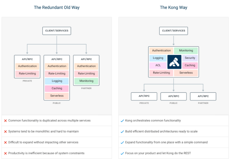 要实现和Kong网关本身的集成和管理本身也很简单,Kong网关提供各类的Rest API接口,可以很方便的实现和Kong网关能力的对接。也就是说你完全可以自己开发要给API管控治理平台,而底层引擎用Kong网关。
