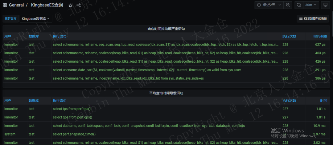 慢SQL的问题,前面两个语句都是perf表的查询,响应时间高达1s多,看来是这个表太大又没有建立索引的问题。华生·K医生依据KMonitor的检查报告,又对病历做了调整,同时提醒金小仓:“KMonitor是KingbaseES的专用检查工具,可以做全身的体检,提早发现隐患问题,像你这种情况需要定期过来检查一遍,不适及时就诊。”金小仓按照病历指导扩容了一个节点,又找推拿师针对大容量的几个表(比如perf表)做了分区并重新建立索引,调整了数据库参数,新增了链接池模块,似乎又回到了之前无忧无虑的快乐时光,客户投诉率下降了好多。体检日记—预估潜在风险