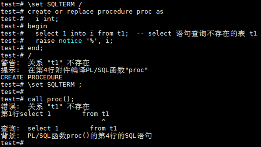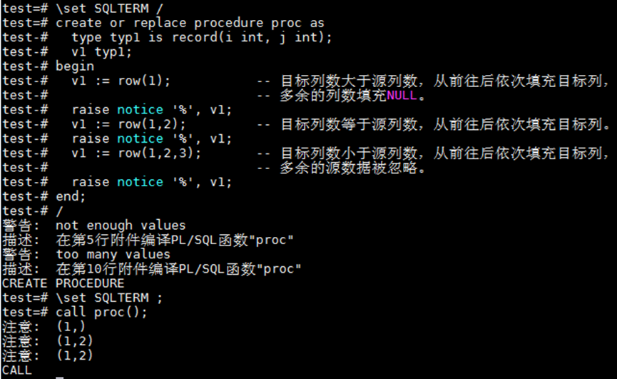 为保证数据的向下兼容,数据列数的匹配性检测只抛出 WAINING ,相关的 PLSQL 对象仍能正常创建并按照原有的逻辑继续调用执行。