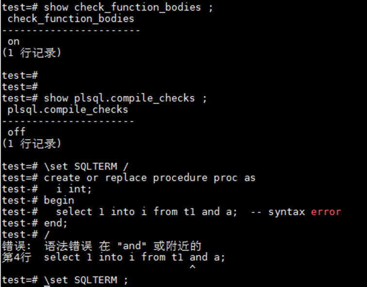 语法合规性检查只受参数 check_function_bodies 控制,即只要设置 check_function_bodies 参数值为 true。
