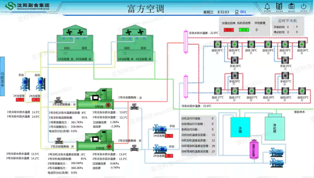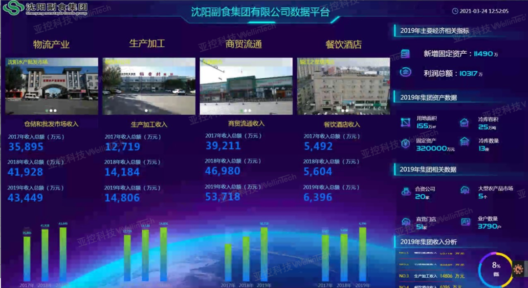 面对当前疫情严峻形势,各地区出现物资短缺的背景下。各地将保障基本民生,加快推动绿色低碳发展,,稳步推进碳中和行动作为发展目标。亚控科技积极贯彻落实党中央、国务院的决策和部署,以实际行动为有需要的企业提供有速度、有温度的产品、技术支持服务。沈阳副食集团(以下简称“集团”)是沈阳市国资委出资的大型国有流通企业集团,是市管国有重要骨干企业之一,是沈阳市人民政府菜篮子工程的重要载体。此次项目主要为解决集团中各子系统独立,重复登录,也无法进行有效的智能分析管理,造成远程控制管理不顺畅等问题。在集团数字中心,亚控科技通过运用组态思维技术将各区域的远程设备系统数据对接整合,形成一套综合远程智能控制系统。其中涵盖多个系统,通过系统集成平台可实现远程操控、监控、质控、报警提示、智能分析等功能。智能集成系统平台能通过数据分析,智能化的管理集团各区域运行设备及其它系统。