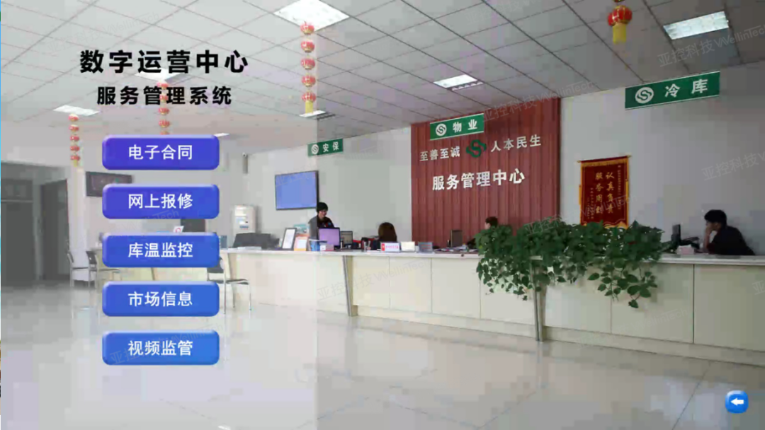 整合服务管理系统,远程签属合同,实时监管市场、冷库、现场情况,监督巡视人员,监控库温,数据收集储存。