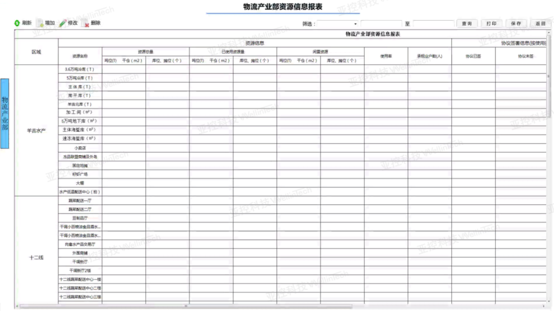 本次项目针对水产物流园、塔湾物流园、十二线物流园、张士物流园、白塔堡物流园、皇副超市、东副超市等区域制冷系统、空调系统、锅炉系统、变电系统、安防系统、服务管理系统、综合管理系统等进行远程集中监控以及综合分析,同时集成物业管理系统、安防管理系统、服务管理系统、综合管理系统、数据分析系统。
