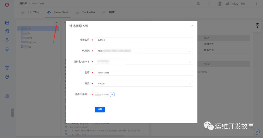 按着需要填写信息,需要自定义的value.yaml,可以到高级部分定制。