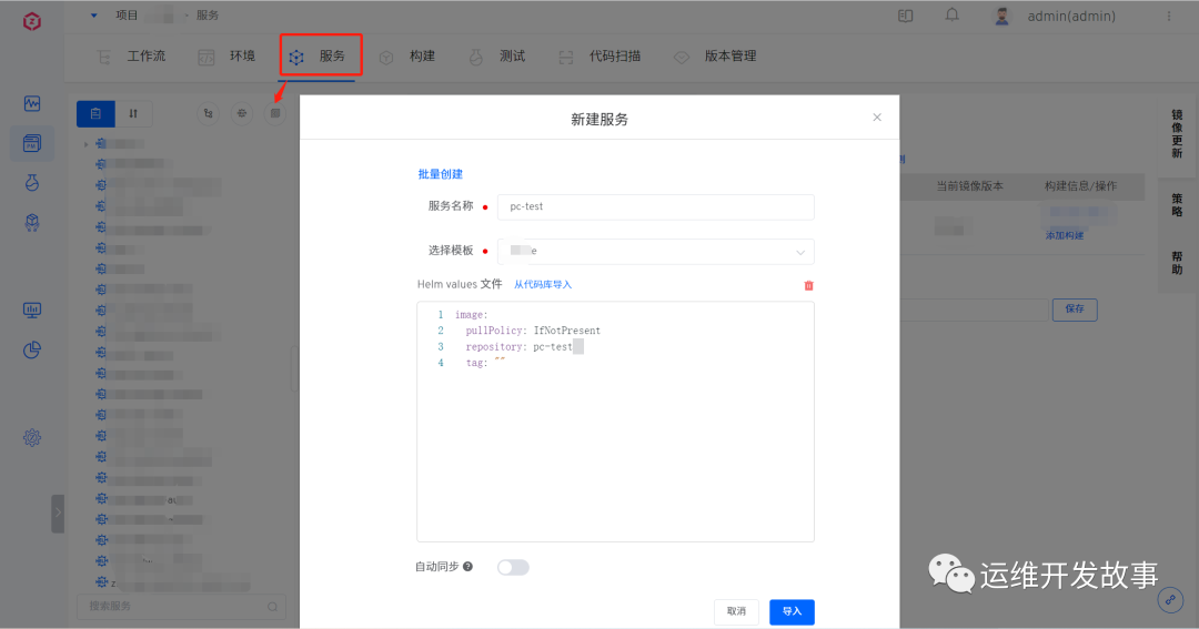 我们选择使用模板进行创建,然后关联到对应的服务和代码即可。