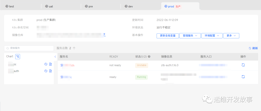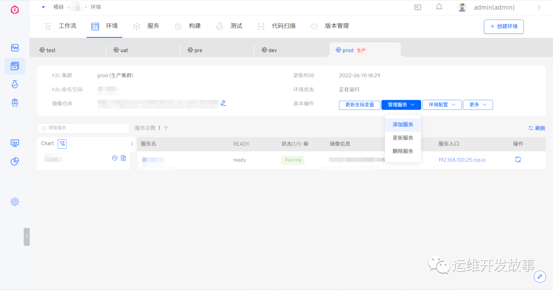 环境管理还有其他功能,比如说重启、查看日志、进入Pod等。