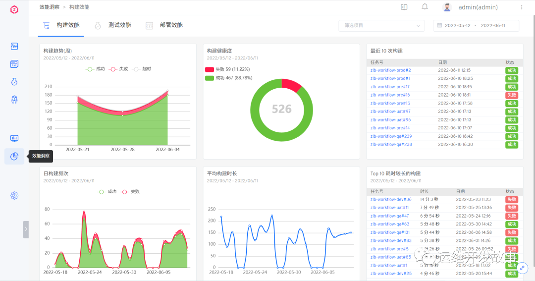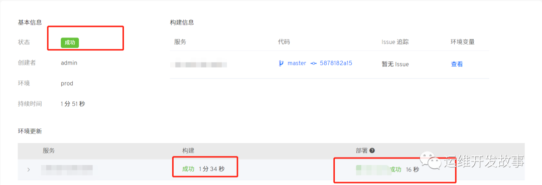 我们可以点击具体的服务看具体的构建信息,方便排错。