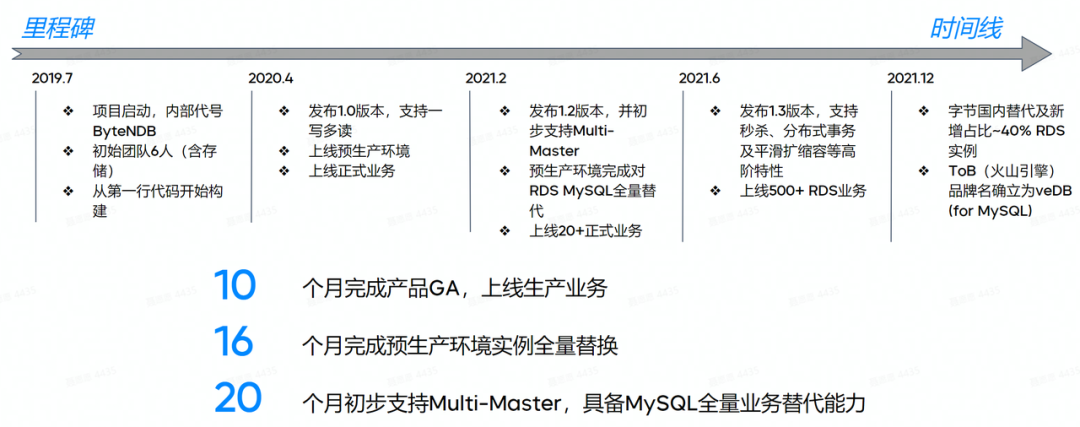 veDB(for MySQL) 具体的发展历程如下图所示:
