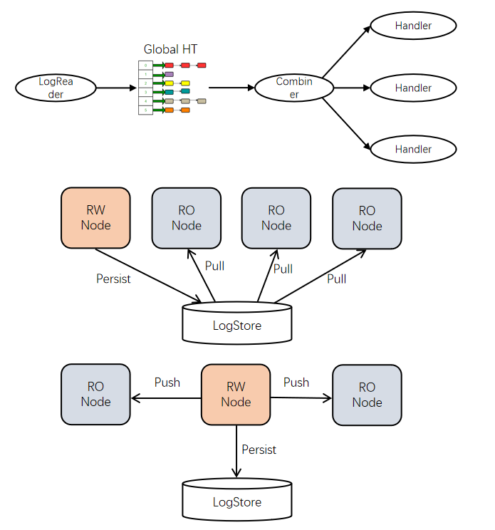 Redo 日志推送(Push)模式:Push 模式是指在 RW 节点完成日志持久化之后,直接把 Redo 日志推到只读节点。