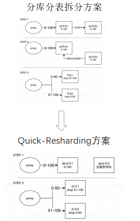 对于一写多读的架构,是如何做到多写呢?团队结合了字节内部的分库分表的中间件与 veDB,提供 Multimaster 支持。但是分库分表的 Multimaster 在写流量较大的场景时(例如 618 或双 11 活动)会面临集群扩容的问题,活动结束后又会面临集群缩容的问题。传统基于中间件的分库分表方案扩容需要复制数据,会面临两个问题:其一是耗时与数据量成正比,其二是还需要一倍的冗余空间,因此需要扩容。另外,分库分表目前没有一个有效的在线缩容方案,会导致在大型网络活动结束后,没有办法及时缩容。