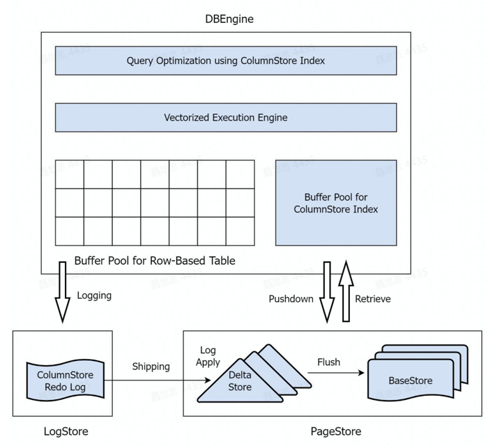存储层 Write-Through:veDB 架构的特点是 Log is Database。为了优化 DDL,团队直接写入 Page store,Bypass 了 Log store,起到一定的加速作用。