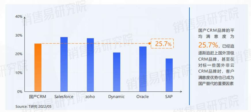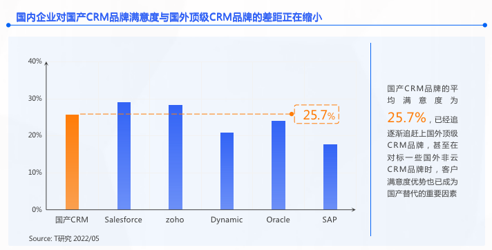 国内企业对国产CRM品牌满意度与国外顶级CRM品牌的差距正在缩小