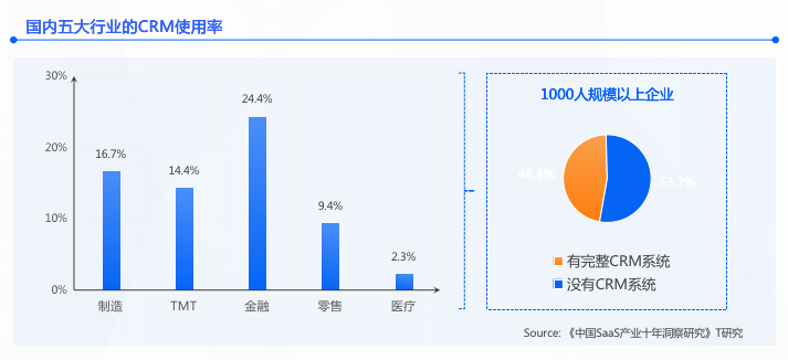 自21世纪初以来,作为全球企业“新宠”,CRM受到了热捧,很多企业开始着手建立起自己的CRM系统。从概念兴起至今,CRM在中国市场已有20年左右的历史,服务的边际也从早期的销售自动化、销售管理逐渐拓宽为集营销、销售、服务为一体的围绕客户全生命周期管理的系统,其拓客、保客降本增效的能力已经在企业当中获得高度认可。基于云转型浪潮成长起来的Salesforce,是国际CRM品牌的代表,其产品的核心主要聚焦于将过往线下的销售流程通过CRM手段实现自动化管理;而国产CRM的内在逻辑,除了科学、高效的流程数字化、业务数字化之外,更强调通过CRM系统打通企业内外部连接,令企业内部组织与外部伙伴、客户甚至产品高效联动、互动、协作。