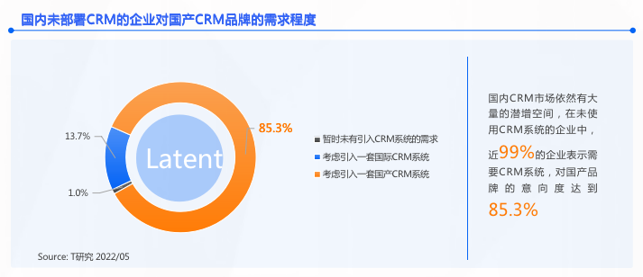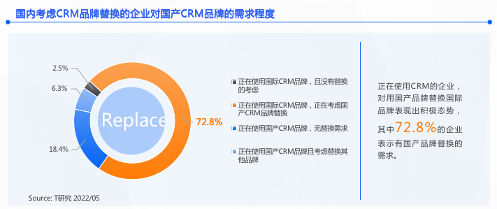 综合来看,由于国产CRM实力、宏观政策、国际环境等因素的驱动,国内企业的国产CRM品牌选型必将是当前和未来的主流。