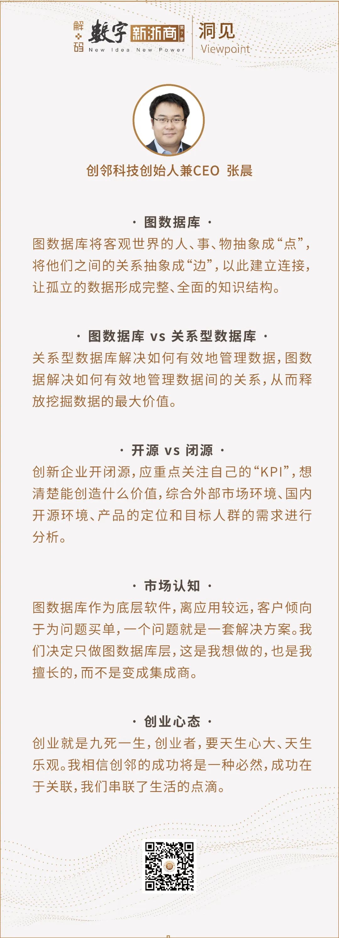 张晨:中国有巨大的人口基数和成熟的数字化基础,具备产生海量数据、催生上层技术和应用的基本条件。做数据关联、创造数据连接价值,中国会是全球最好的市场,没有之一。投入基础软件研究,现在正当时。