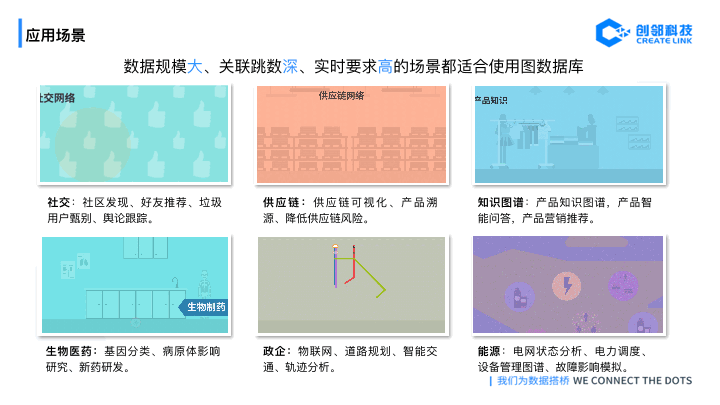 创邻业务覆盖的电力、金融、营销、电信、供应链、社交、公安等领域,都符合这些特征,我们可以在每个领域选择典型场景先行落地。