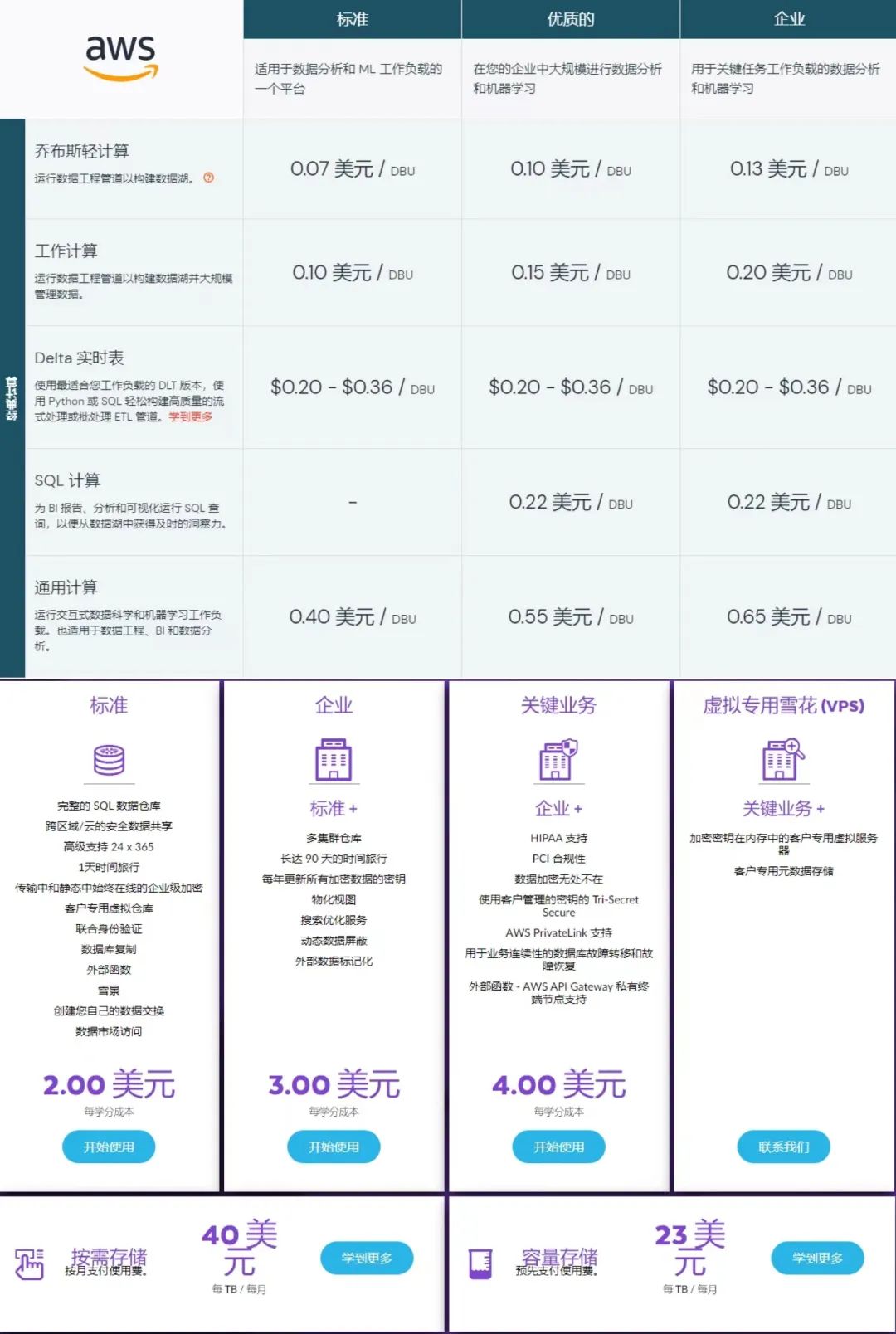 另外,通过对比官网收费方式发现,虽然是平台租出服务器的计算资源,但这些服务器整个系统都建立在主要的云厂商的基础服务上。以Snowflake(下)为例,同样是以每秒粒度使用的计算资源付费,Snowflake是平台和云厂商打包收费方式,客户对底层服务界面(如EC2)和上游的Snowflake的成本花费要一次性付清,但比例是怎样无从得知,而打包之后Snowflake需要支付给云厂商另外成本,这在无形中增加了费用风险。