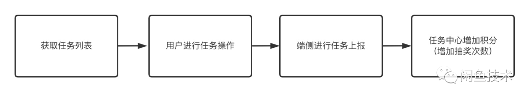 大多数情况下,抽奖活动中都会有任务玩法,用户需要通过完成任务来增加抽奖次数。闲鱼的任务体系是使用淘系任务中心进行搭建的。任务与抽奖的链路如下图所示。
