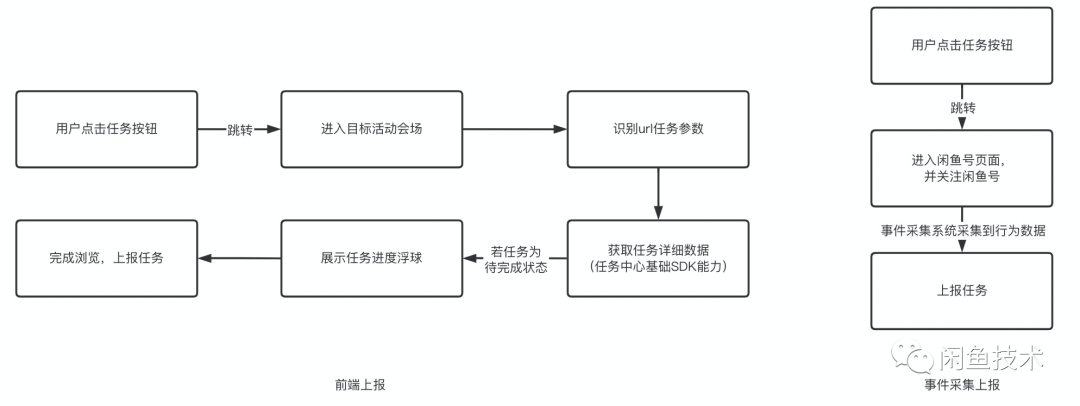 关于任务上报,目前闲鱼主要有两种方案:前端上报、事件采集上报。
