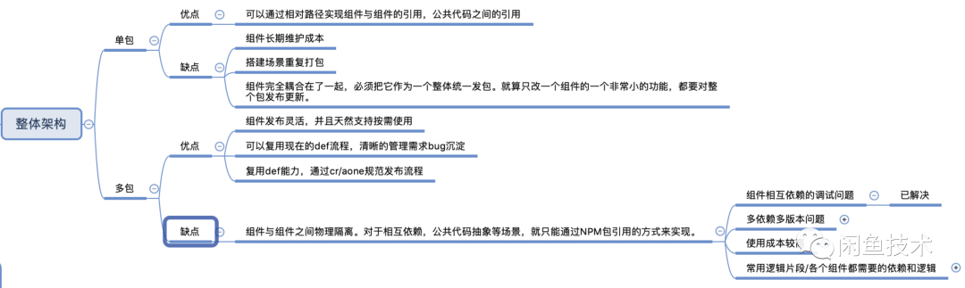由于闲鱼的业务特点决定了它不仅需要考虑源码开发的项目更需要考虑搭建场景。而如果用单包则无法复用集团现有的能力,导致搭建场景下组件重复被打包进页面各个模块的情况。