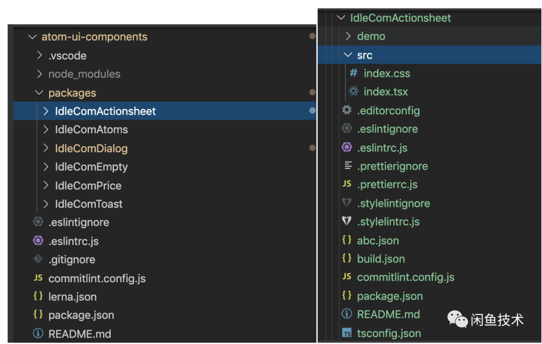 例如下面的目录结构,所有的组件均在packages下面管理如下图四左图所示,每个组件的目录结构如图三右图所示。