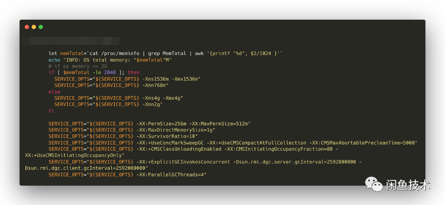 可以看到,应用确实是使用CMS作为垃圾回收器,堆大小被配置为4G,Young区2G,Old区2G,CMSInitiatingOccupancyFraction参数被配置为80%,这意味着老年代占用超过80%时触发CMS Old Gen回收,2G*0.8 = 1.6G,差不多就是监控中体现的1.7G左右开始回收,然后老年代占用回落。